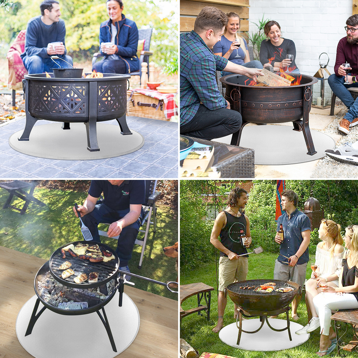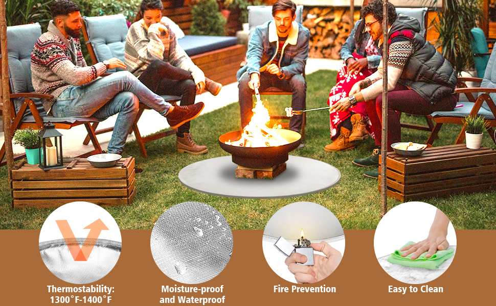 -Deck Protector: Our fire pit mat can protect your patio or deck of lawn, wood, stone, brick, marble or cement surface from heat damage. It has moisture-proof and waterproof effects and can be used in any weather.