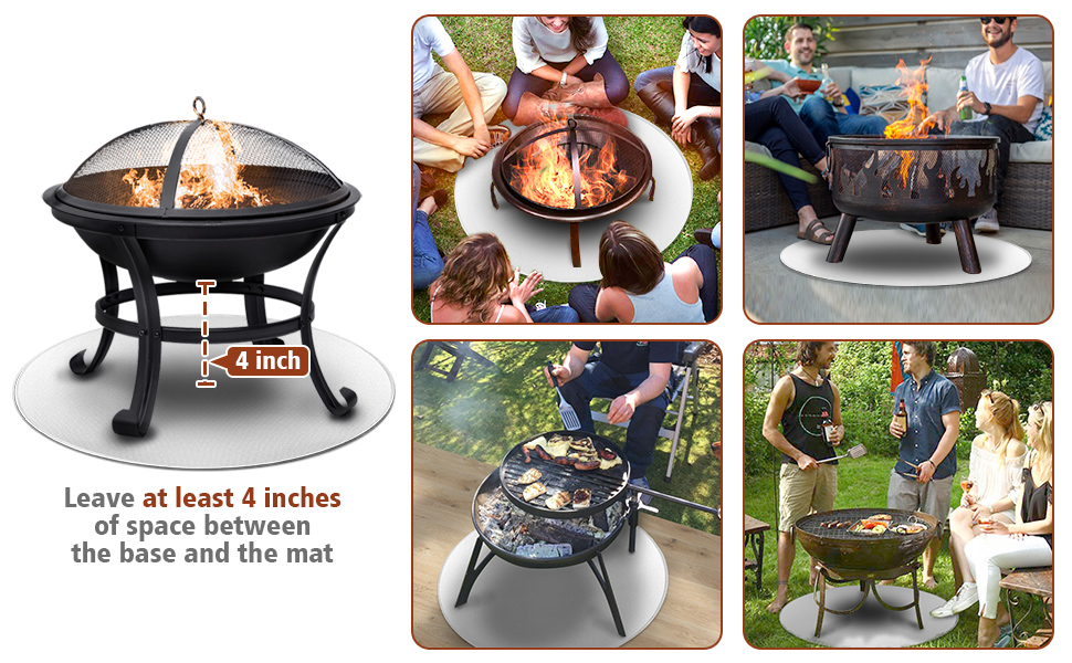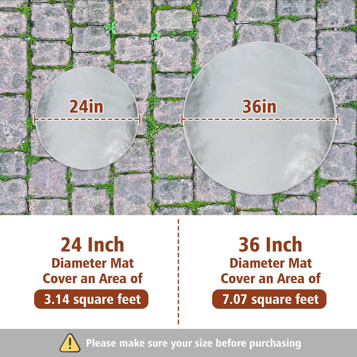 -Note: Our fire pit mats are available in two sizes (24 "/ 36). Please confirm the correct size before purchasing. During the use of fire mats, a gap of 4 inches shall be maintained between the bottom of the fire pit and the fire mats.