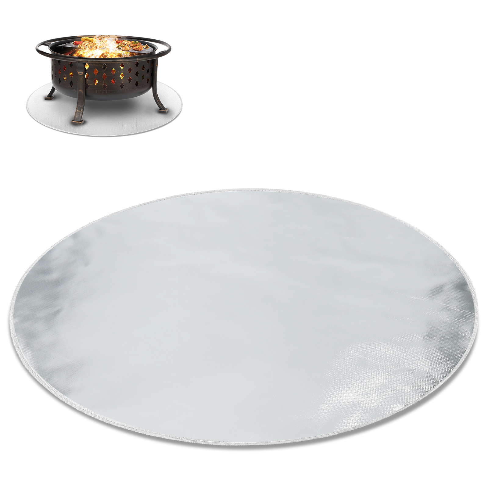 I bought this to place on the grass under our fire pit. Works perfect. Protected the grass from burn and radiated the heat from the pit upward.