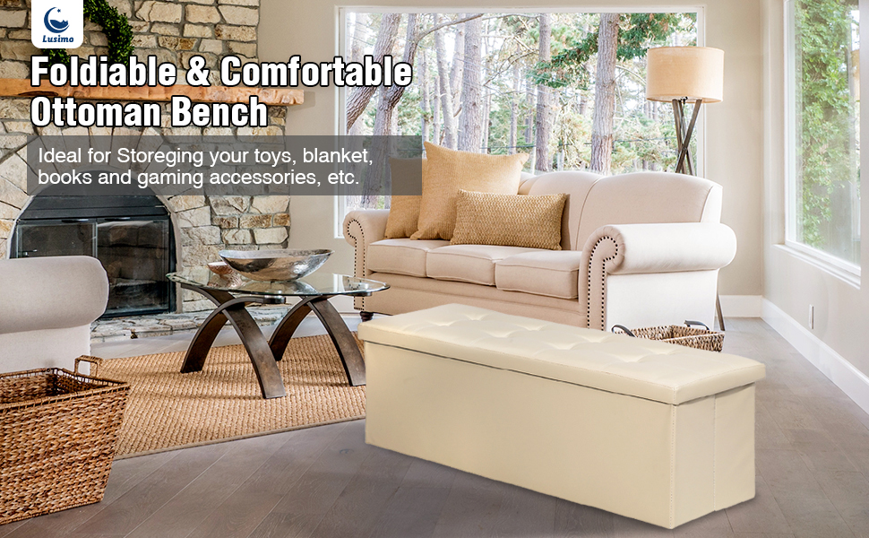 • Sized 43"x 15" x 15" L*W*H(110 x 38x 38cm).Multipurpose Use Multi-purpose ottoman works great as shoe bench, footstool, window bench, bed stool, toy chest, coffee table, puppy step, etc.