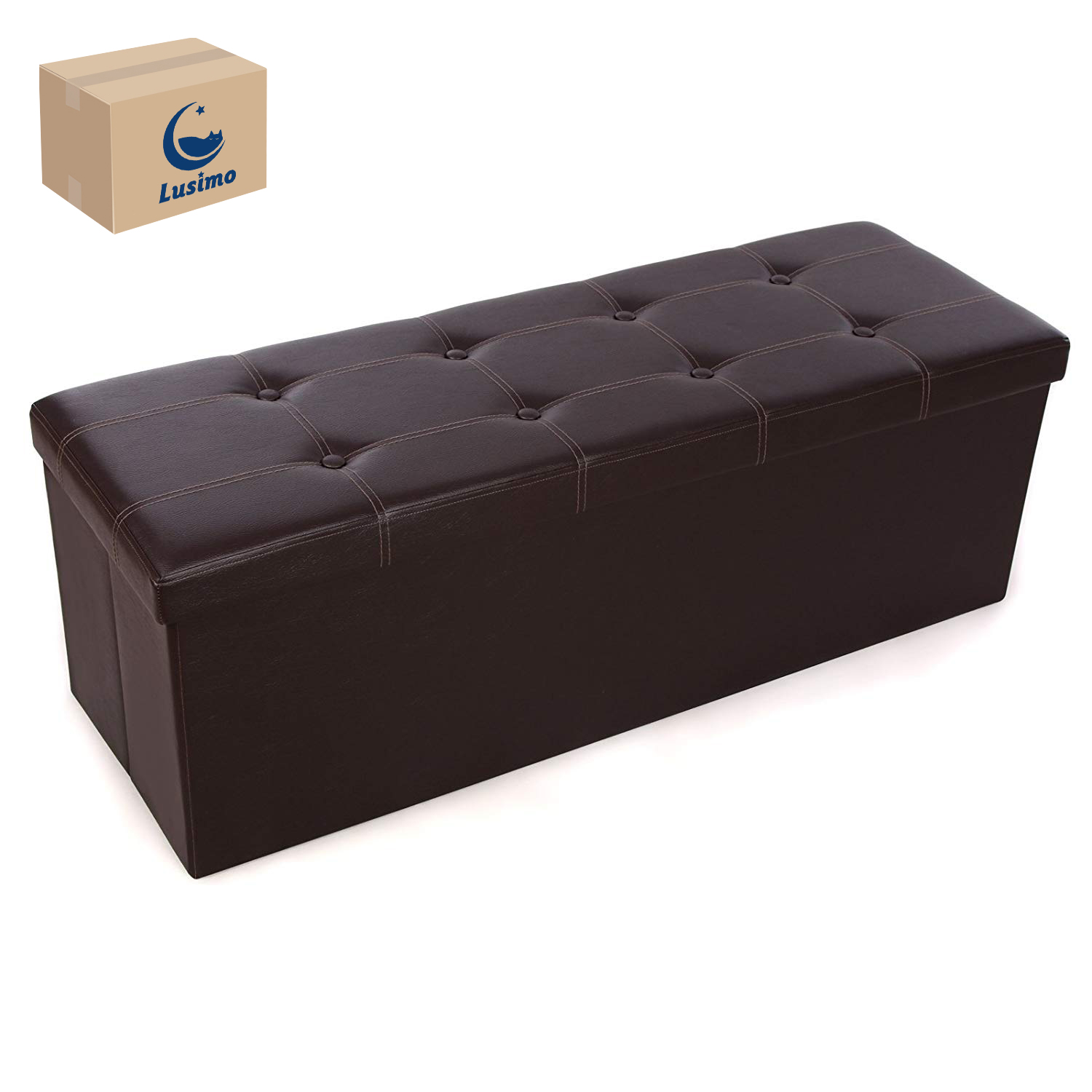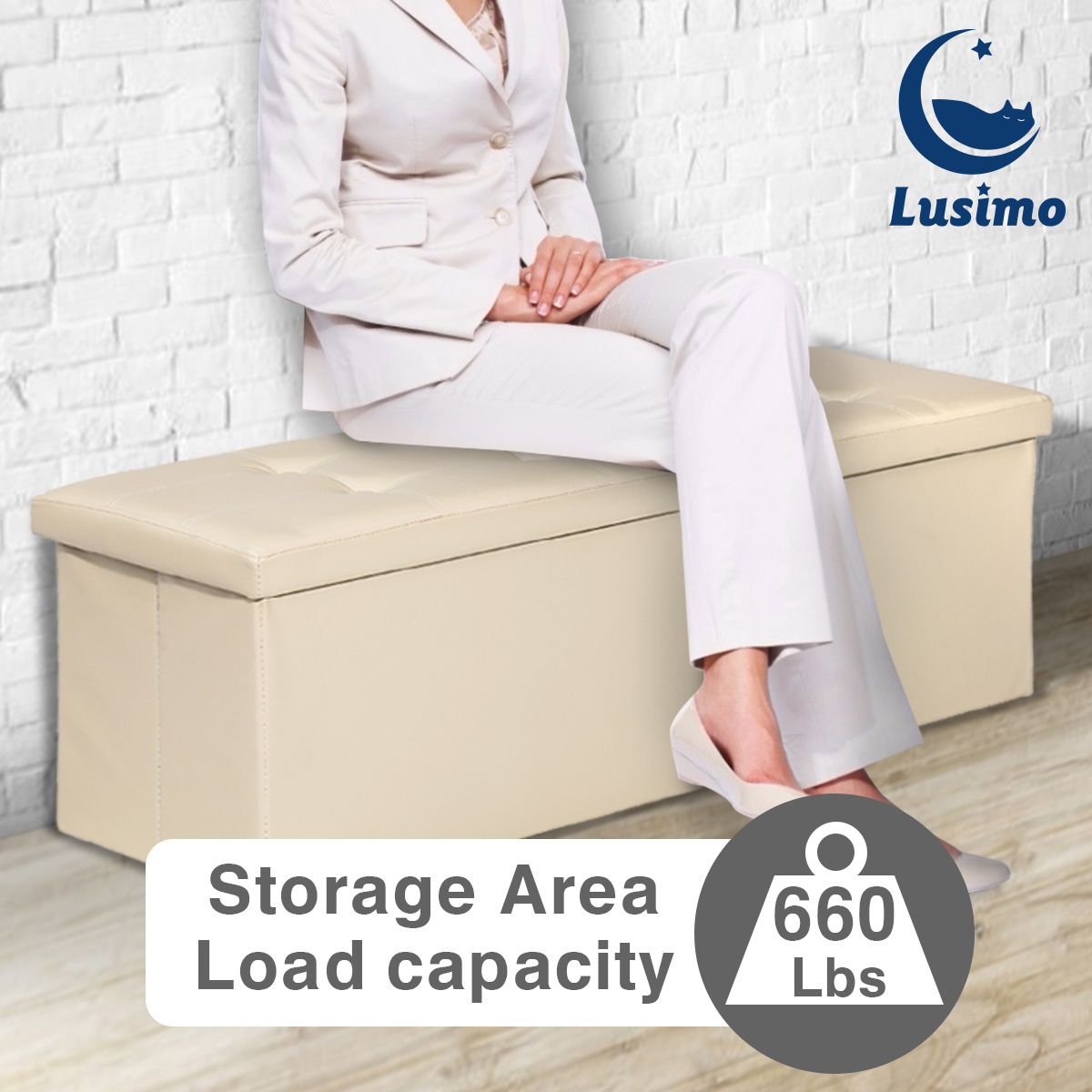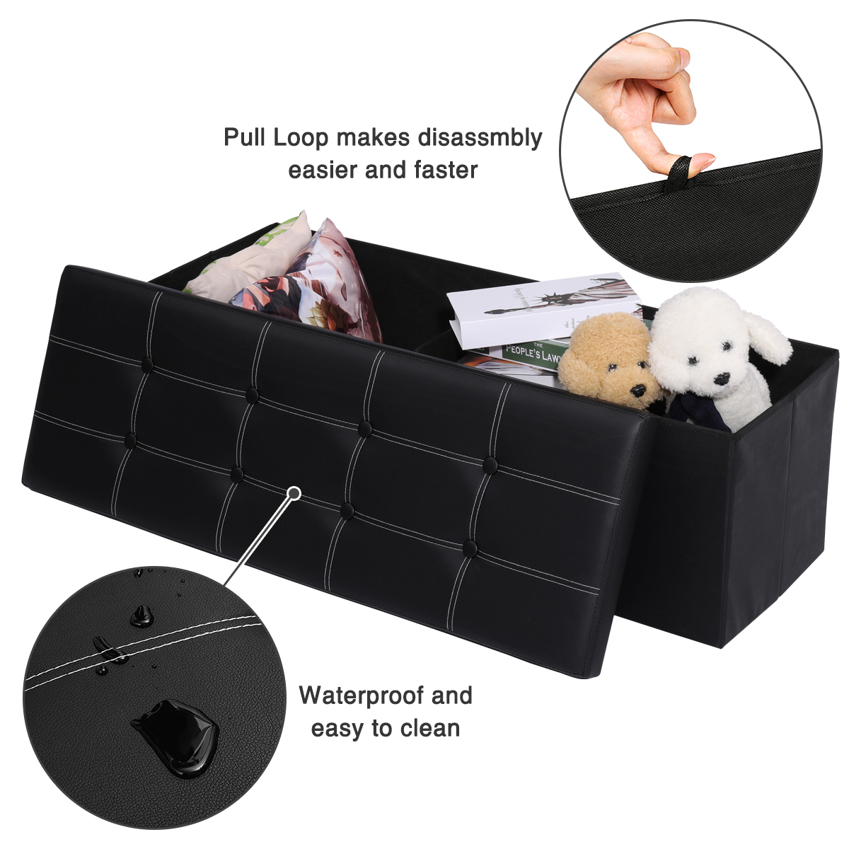 KingSo Ottoman Storage Seat Bench Foldable Faux Leather Footrest , Toy Chest for Kids, Storage Footrest Padded Seat  43inx15inx15in