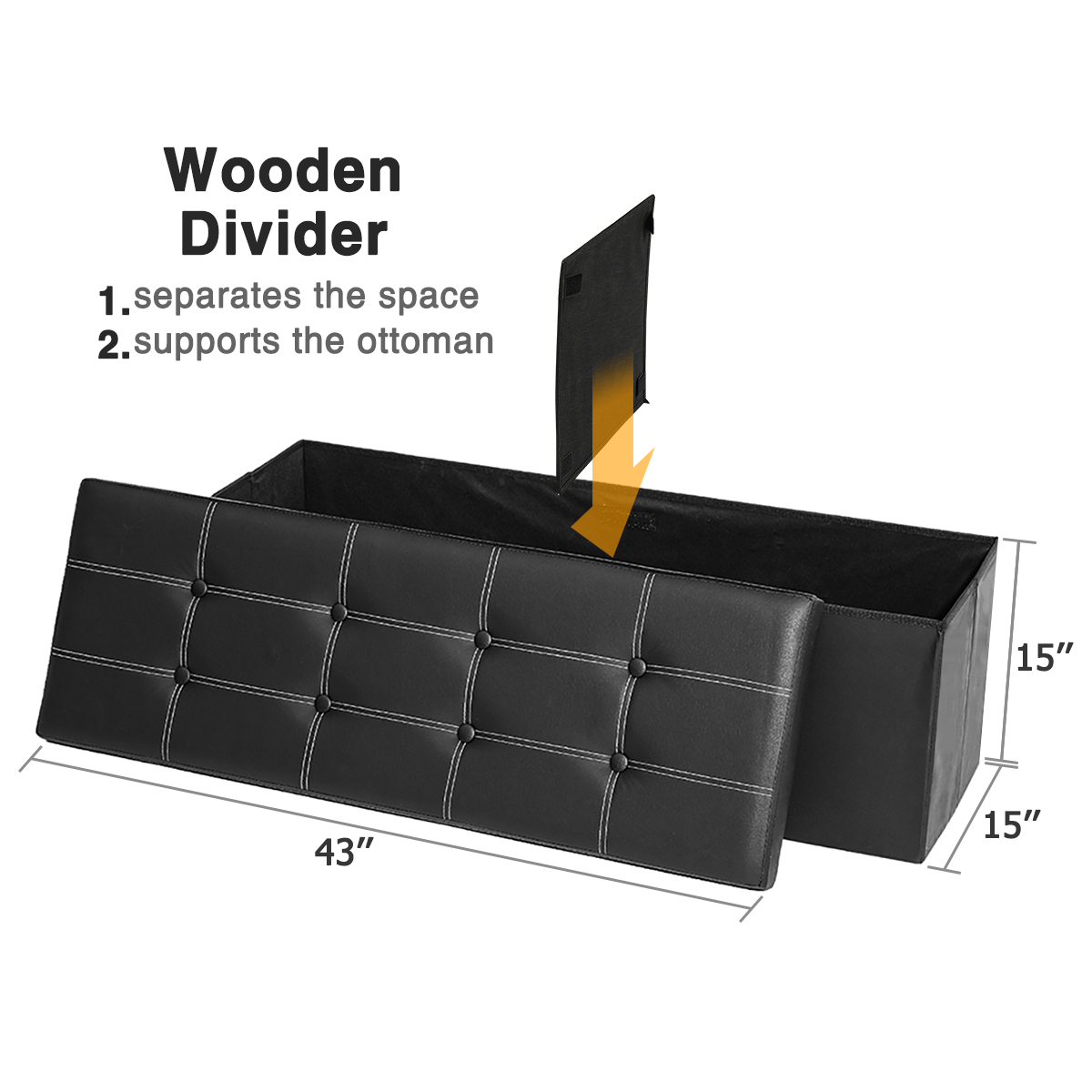 • The storage chest can be easy set up and assemble in 1 minute. Dedroom bench could not only save your room , but also your assemble time. This ottoman bench holds up to 660lbs (static load capacity), sized 43"L x 15"W x 15"H (110 x 38 x 38cm).