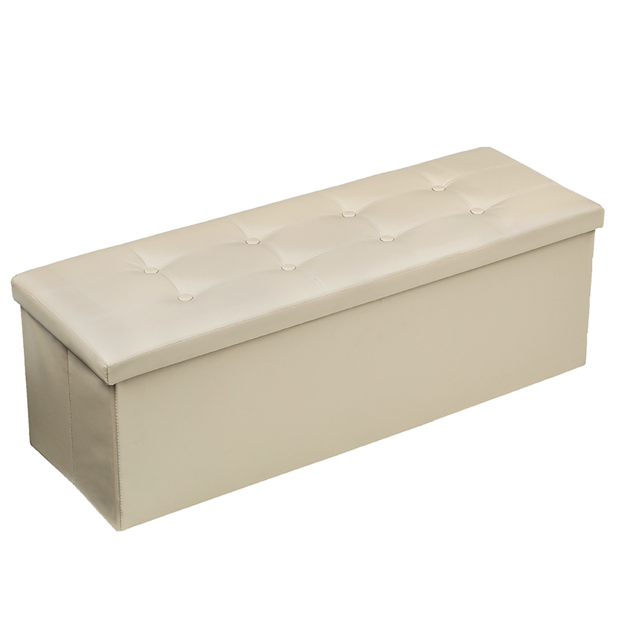 KingSo Ottoman Storage Seat Bench Foldable Faux Leather Footrest , Toy Chest for Kids, Storage Footrest Padded Seat 43inx15inx15in