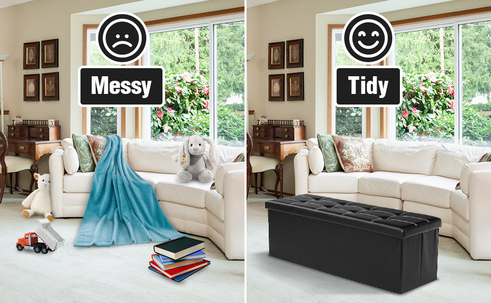 • The toy chest covered with premium faux leather, highly resilient foam padding brings great seating experience. Multi-purpose ottoman works great as shoe bench, footstool, window bench, bed stool, toy chest, coffee table, puppy step, etc.