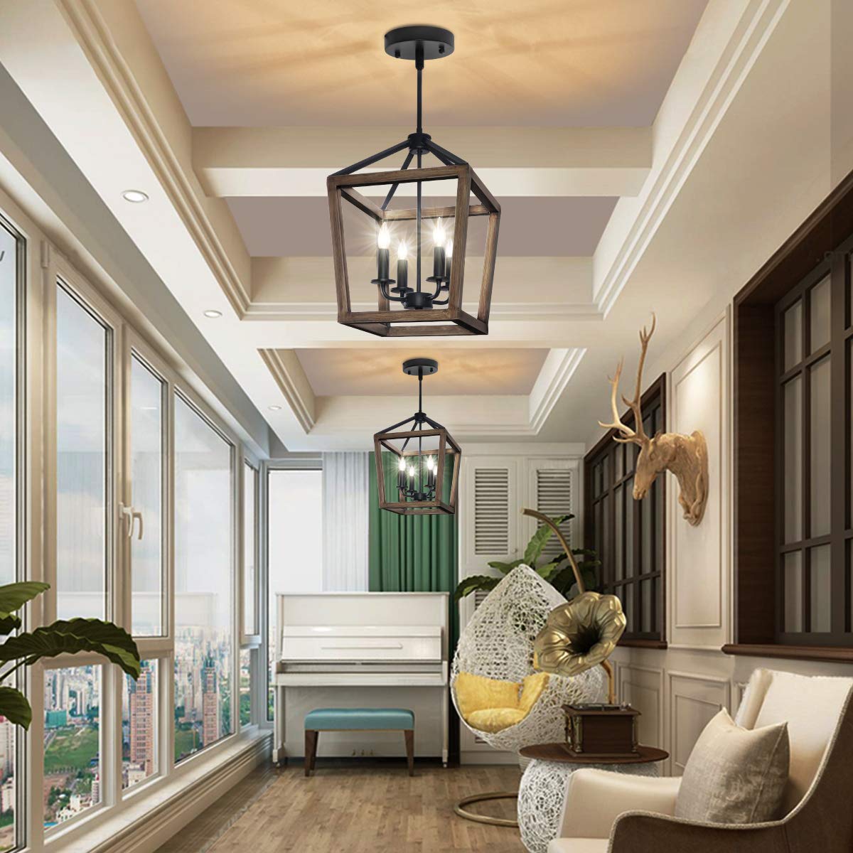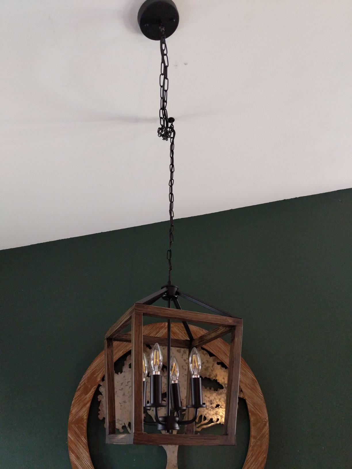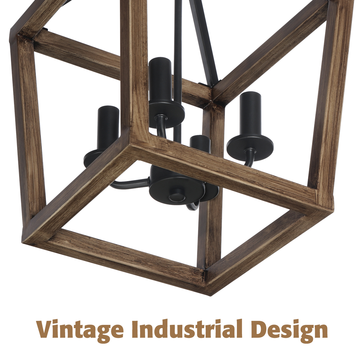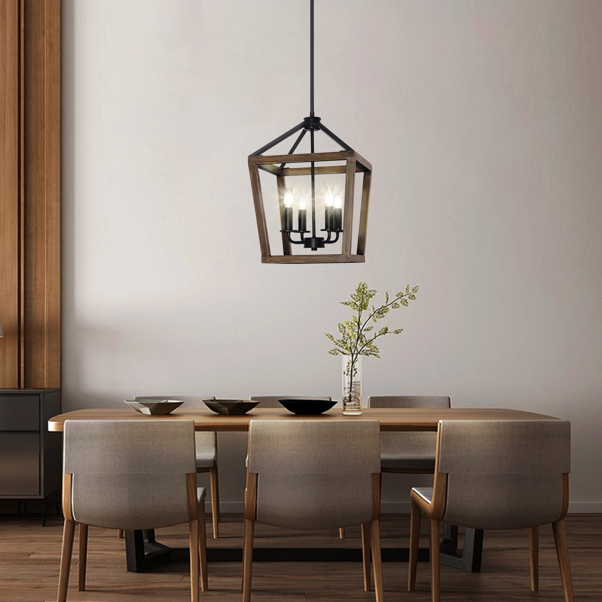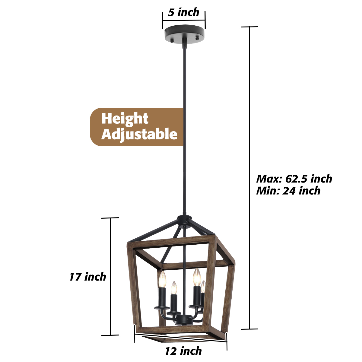 • 4 Lights Rustic Chandelier - KingSo farmhouse Square chandelier: 17''H x 12''W x 12''D, 60 inches in chain and adjustable chain is perfect for proper height installation. The ceiling light uses 4 max 60-watt candelabra E12 candelabra base incandescent light bulbs (Bulbs Not Included).