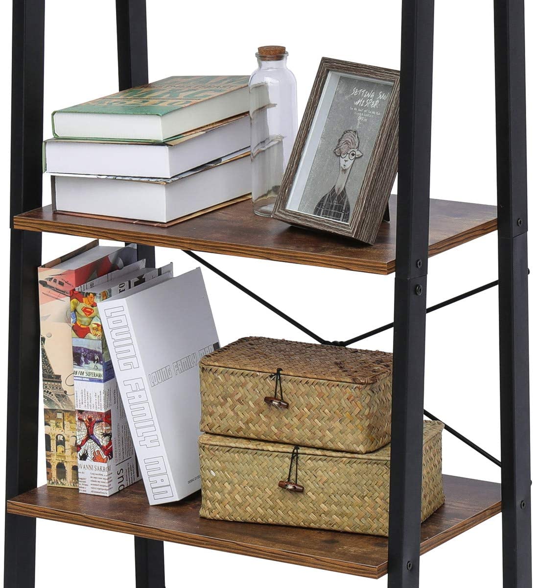 KingSo Industrial Ladder Shelf 4-Tier Bookshelf, Vintage Rustic Storage Rack Shelves with Wood Look and Metal Frame