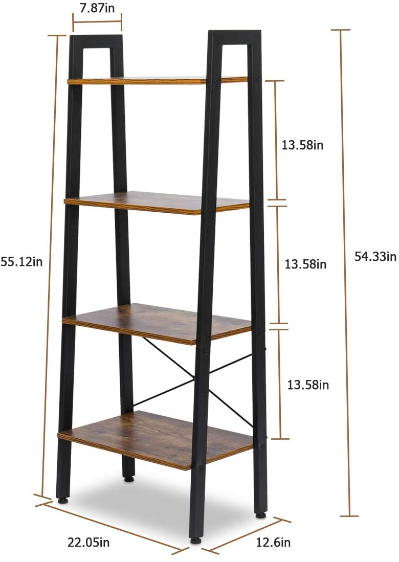 KingSo Industrial Ladder Shelf , 4-Tier Shelves Vintage Rustic Storage Rack Shelves, Wood Look Accent Furniture, Metal Frame