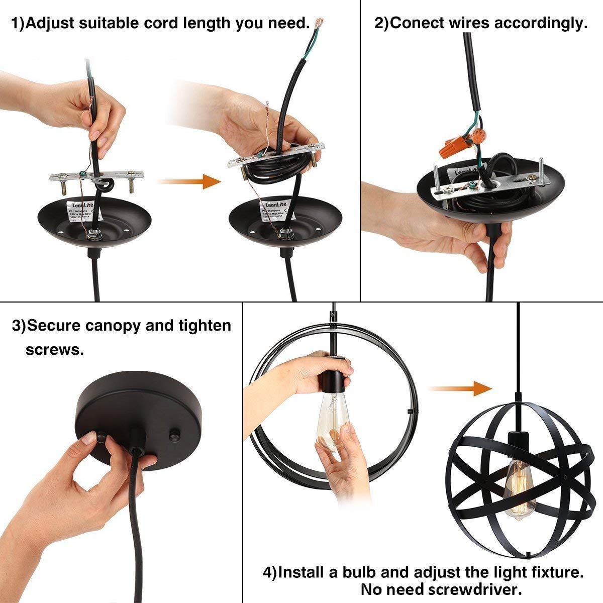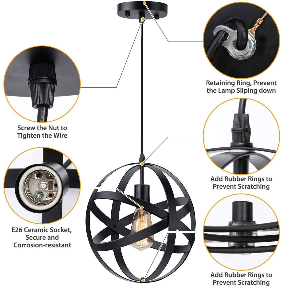 • Safe and Secure - Hardwired. Open-air design of the black metal pendant lamp protects the bulb well and maximizes its light, and increases fashion charm. Well-package and users' manual and additional accessories, ensuring your installation.
