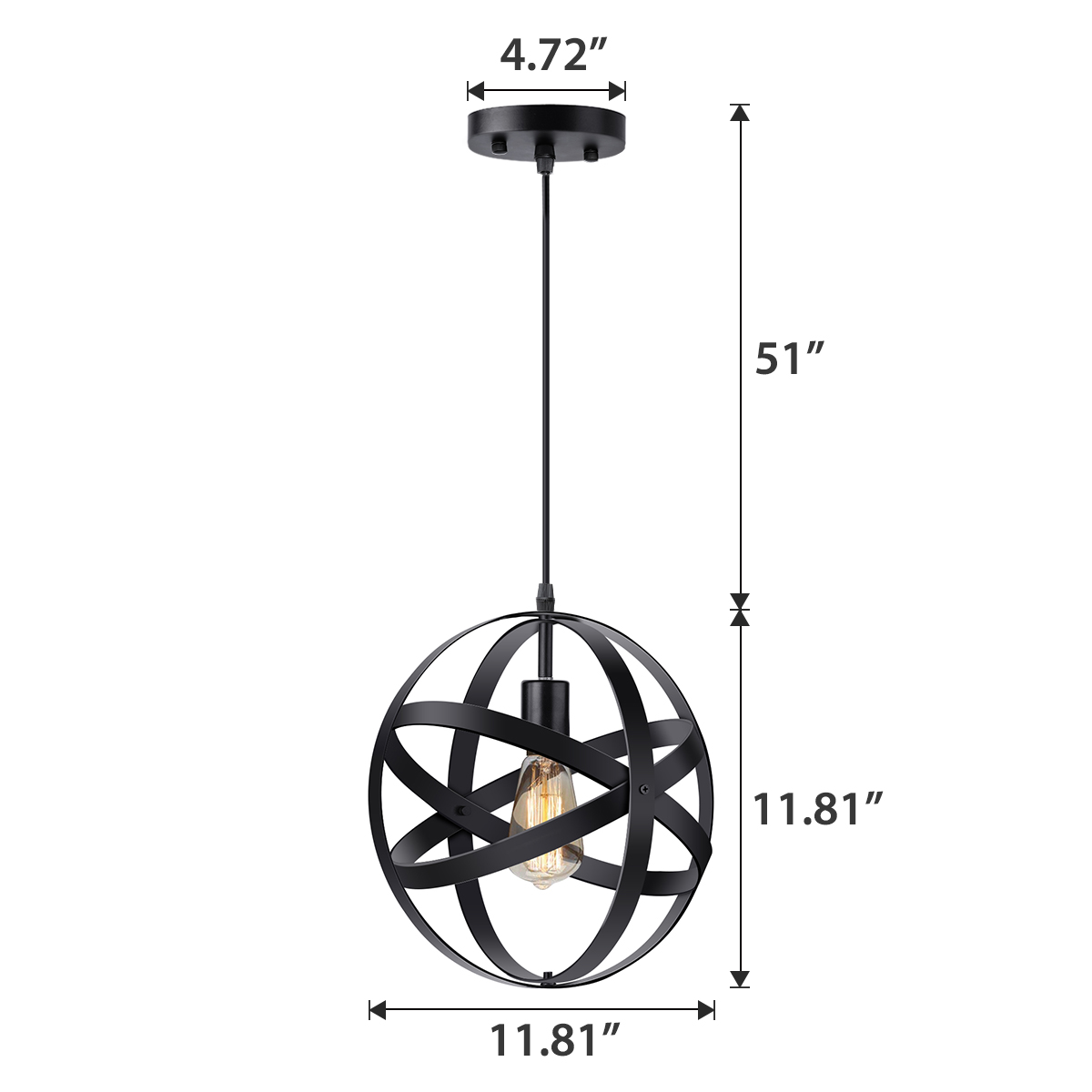 • Size: The diameter of the industrial globe pendant light is 11.81 inches, suggested Room Size: 5-8㎡. Hanging line is adjustable (max length of 51 inch), you can choose the suitable cord length BEFORE INSTALLATION. 4.2 Pounds in weight. Note: Please check the dimensions carefully before purchasing if this hanging lamp will fit your room.